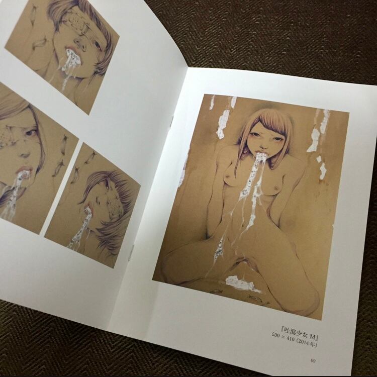 表紙・タイトルにもなっている2014年作品「インテュイショニズム」を始め、国立新美術館での公募展「アジア創造美術展2015」へ出展した「少女六道輪廻」、パンクバンド・猿芝居のEPジャケットイラストなどを収録。